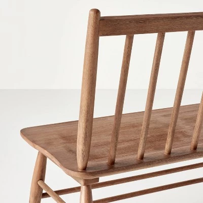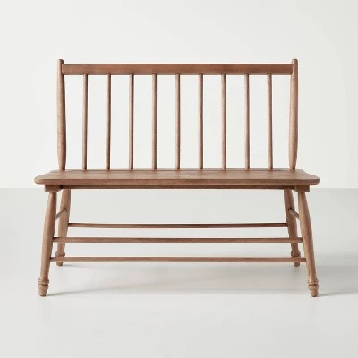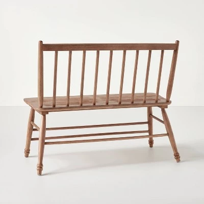 This Vintage Windsor Dining Bench from Hearth & Hand™ with Magnolia is perfect to place in your entryway, lobby or pair with your dining table. This rectangular dining bench features a non-upholstered design with an angled spindle backrest for an airy feel, a solid seat and built-in footrails. Plus, it’s natural lacquered finish easily coordinates with any decor style.