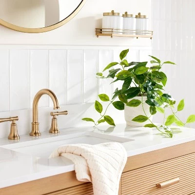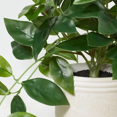Create an everlasting botanical display with this Faux Hoya Plant from Hearth & Handâ„¢ with Magnolia. This potted plant arrangement showcases a faux foliage of green hoya leaf plant to bring a touch of nature to your indoor space. The artificial construction requires no maintenance, while the cream paper mache pot pairs well with most decors and allows for easy display. Place it on the floor or on a table to finish the look of any room.