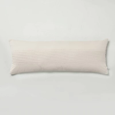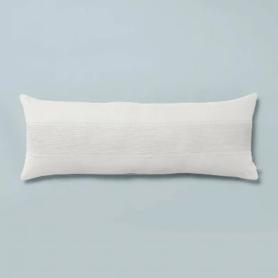 The Slub Center Stripe Oversized Lumbar Bed Pillow from Hearth & Hand™ with Magnolia instantly brings a sumptuous sense of style and comfort to your space. This decorative pillow is designed with lumpy textured stripes across the center on a neutral-hued backdrop to lend eye-catching appeal to your bedding ensemble. Featuring a soft cotton exterior and a soft filled interior, this oversized lumbar pillow provides plenty of cushioned comfort while you sleep, relax or lounge. Toss it on the floor or set it behind a bank of pillows on the bed for an instant style upgrade.