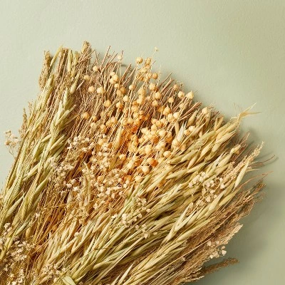 Elevate your tabletop decor by adding this Preserved Grass & Lino Bundle from Hearth & Handâ„¢ with Magnolia. This 20-inch preserved bundle features dried grass, dried leaves and dried berries to brings a natural neutral look to your space. Whether you display this piece on its own in a vase or add to a floral arrangement, it will create a welcoming display