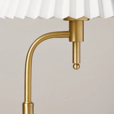 Light up your bedside, work desk or reading nook with this 22-Inch Pleated Shade Metal Arch Table Lamp from Hearth & Handâ„¢ with Magnolia. Designed with a pedestal base, this practical desk task lamp features a brass finish that’s easy to coordinate with any decor. The cream-colored pleated shade adds a classic touch, and the one-way turn-knob rotary switch makes it easy to turn on and off.