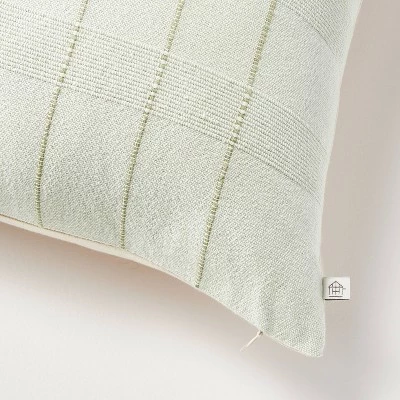 Elevate your seating arrangement or bedscape with this Textural Multi-Stripe Square Throw Pillow from Hearth & Handâ„¢ with Magnolia. The 24-inch square pillow is decorated with green yarn-dyed stripes and textural stripes on a cream-colored background for a charming look. Featuring a 100% cotton exterior and padded interior, this decorative throw pillow adds the right amount of comfort and style whether you want to lounge on the sofa or simply need a chic focal point in your living room.