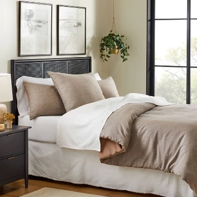 Spruce up your indoor space with the sophisticated style of the Heathered Stripe Euro Bed Pillow from Hearth & Hand™ with Magnolia. This brown bed pillow features a square shape with a heathered striped pattern for timeless charm. Designed with a soft fabric exterior, this square throw pillow helps provide a comfy spot for relaxing, and comes with a machine washable cover for easy maintenance.