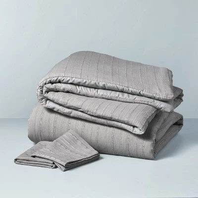 Give your bedding a complete chic makeover with this 3-Piece Washed Loop Stripe Comforter Bedding Set from Hearth & Hand™ with Magnolia. This comforter bedding set includes two standard shams and a matching comforter that are detailed with washed loop stripes for a textured contemporary look. Made from cotton material, this comforter bedding set brings you year-round comfort, while its machine-washable design makes for easy care.