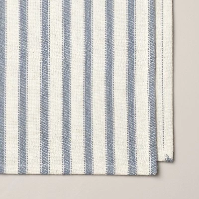 Elevate your dining experience with this 4-Pack of Engineered Stripe Cloth Napkins from Hearth & Handâ„¢ with Magnolia. This cloth napkin set includes four square napkins adorned with blue stripes on a white backdrop for a timeless look that pairs well with any table decor. Perfect for everyday use or entertaining, these napkins boast a cotton-linen construction, making them great for wiping spills, messes and hands, and they can be machine washed for easy cleaning.