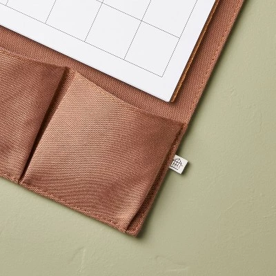 Function meets fashionable decor with the Canvas Pouch 2024-2025 Wall Calendar from Hearth & Handâ„¢ with Magnolia. This calendar features paper monthly calendar pages and a brown canvas backdrop. Plus, there are three pouches for holding everything from pens to scissors to keys and more. Perfect for a home office or kitchen, this calendar is easy to hang on any wall with the two metal-ringed corner holes.