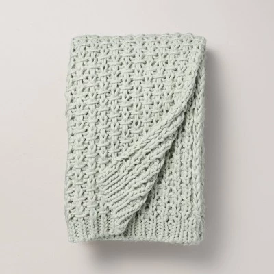 Keep this Chunky Knit Throw Blanket from Hearth & Hand™ with Magnolia close at hand to help you stay warm and cozy during chilly weather. Made from heavyweight knit fabric, this throw blanket features a chunky construction in a solid color. The blanket can be tossed on a bed, couch or armchair to grab as needed, and it should be hand washed to clean, then line dried or laid flat to dry.