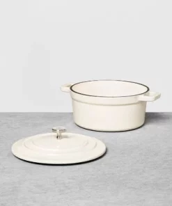 From soups and stews to risotto, pasta and one-pot meals, prepare savory and satisfying dishes for your family in the Enameled Cast Iron Dutch Oven from Hearth & Hand™ with Magnolia. Made from sturdy cast iron with an enamel coating, it helps retain heat for long braises and simmers, and comes with a matching lid to help keep heat in. Great for use on a variety of cooking surfaces including induction, it features two side handles for easy carrying, while the knob at the lid makes it easy to lift on and off. With the beautiful enameled finish of this Dutch oven, it’s also great for displaying in your open kitchen storage when not in use.