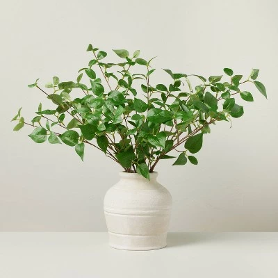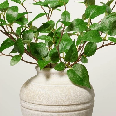 Bring a touch of outdoor beauty to your home decor with this stunning Faux Dogwood Leaf Arrangement from Hearth & Hand™ with Magnolia. This artificial potted plant features natural-looking faux dogwood leaves arranged together to offer a lively vibe to your home decorations, and it comes potted inside a white container for easy display on any tabletop. Simply place this faux potted plant on your coffee table or kitchen shelf to add lush greenery to your space.