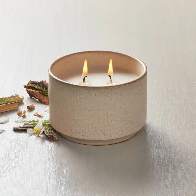 Relax with the woody, earthy fragrance of the Hobnail Ceramic Sandalwood & Terracotta Jar Candle from Hearth & Hand™ with Magnolia. This beige ceramic jar candle is designed in a round shape with a speckled textured pattern for extra visual appeal. Made with soy and paraffin wax, this candle features the scents of sandalwood.
