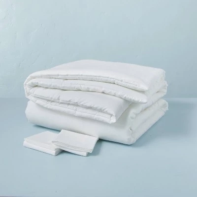 Bring warmth and elegant style to your master suite or guest bedroom with the Linen-Blend Comforter Set from Hearth & Hand™ with Magnolia. This solid-colored bedding set includes a soft-filled comforter in a neutral shade with a textured look. Also included are matching pillow sham(s) to complete your bedding ensemble in cohesive style. Made of a midweight linen-cotton blend fabric, this comforter set offers a chic update to your bedroom decor and is machine washable for easy upkeep.