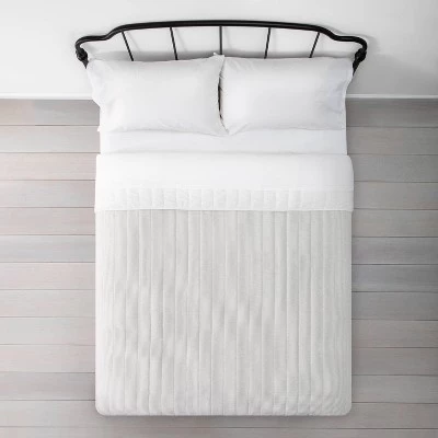 Add design and texture to your sleepscape ensemble with this Microstripe Quilt Sour Cream/Railroad Gray from Hearth & Hand™ with Magnolia. This quilt features a gray micro stripe pattern to bring chic modern style to any room. Made from 100% cotton for breathable comfort, it showcases a soft quilted design that adds a cozy feel to your bed. The lightweight piece can be used as a quilt for warmer nights or as a coverlet to enhance the look of your bedding decor. Plus, it can be simply machine washed for easy care and your convenience.