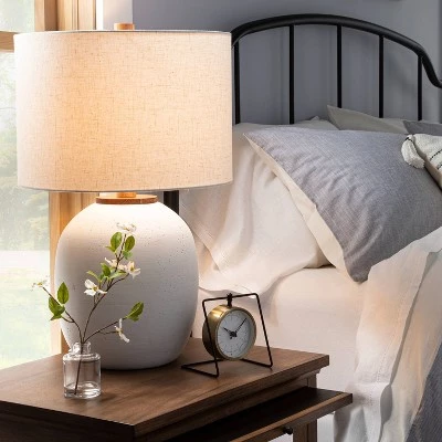 Bring understated style and warm light to your room with the Resin Table Lamp from Hearth & Hand™ with Magnolia. This decorative table lamp features a gently curved base with a textured surface, and it’s paired with a drum-shaped fabric shade to diffuse light evenly with an ambient glow. Keep it at your side table or desk for a functional and stylish lighting solution that’s easy to match with an array of decor styles.