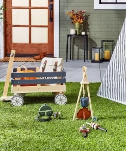 Get your kid ready to play in the imaginary outdoors with this 27-Piece Toy Campfire Adventure Awaits Playset from Hearth & Handâ„¢ with Magnolia. This campfire playset includes everything they need from the “Adventure Awaits” backpack to campfire, play food, pot, mug, dishes and more to get them ready for a fun day of play. Designed to improve their motor skills and creative thinking, this kit is sure to enhance their love for the outdoors.