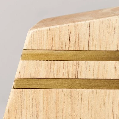 Bring style and function to your workspace or study desk with this 2-Piece Wooden Wedge Bookends with Brass Inlay from Hearth & Handâ„¢ with Magnolia. This two-piece bookend set features a wooden construction in a wedge shape inlaid with brass stripes for a chic mixed-material look. Perfect to place on bookshelves and other flat surfaces, this bookend set helps you organize and display your collection of books